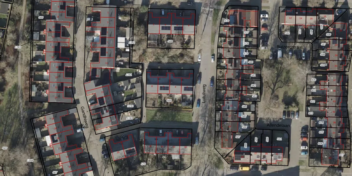 Het perceel waarop Lutuliweg 4 staat heeft een oppervlakte van 590 m². Dit is een groot perceel. De perceeloppervlakte wordt geregistreerd door het Kadaster. Gedetailleerde informatie over de maten van dit perceel kunt u vinden in het rapport Kadastrale kaart met maatvoering van Lutuliweg 4.