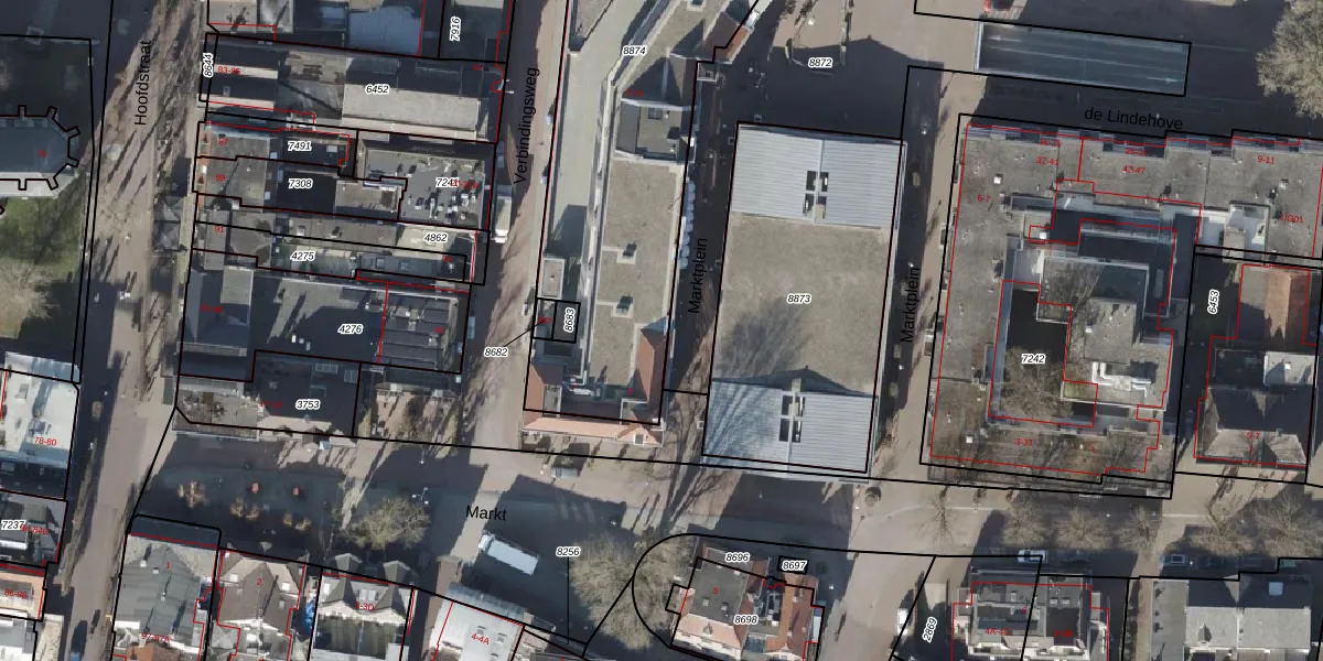 Het perceel waarop Marktplein 10-04 staat heeft een oppervlakte van 2836 m². Dit is een zeer groot perceel. De perceeloppervlakte wordt geregistreerd door het Kadaster. Gedetailleerde informatie over de maten van dit perceel kunt u vinden in het rapport Kadastrale kaart met maatvoering van Marktplein 10-04.