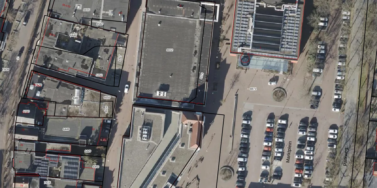Het perceel waarop Marktplein 2 staat heeft een oppervlakte van 1678 m². Dit is een zeer groot perceel. De perceeloppervlakte wordt geregistreerd door het Kadaster. Gedetailleerde informatie over de maten van dit perceel kunt u vinden in het rapport Kadastrale kaart met maatvoering van Marktplein 2.
