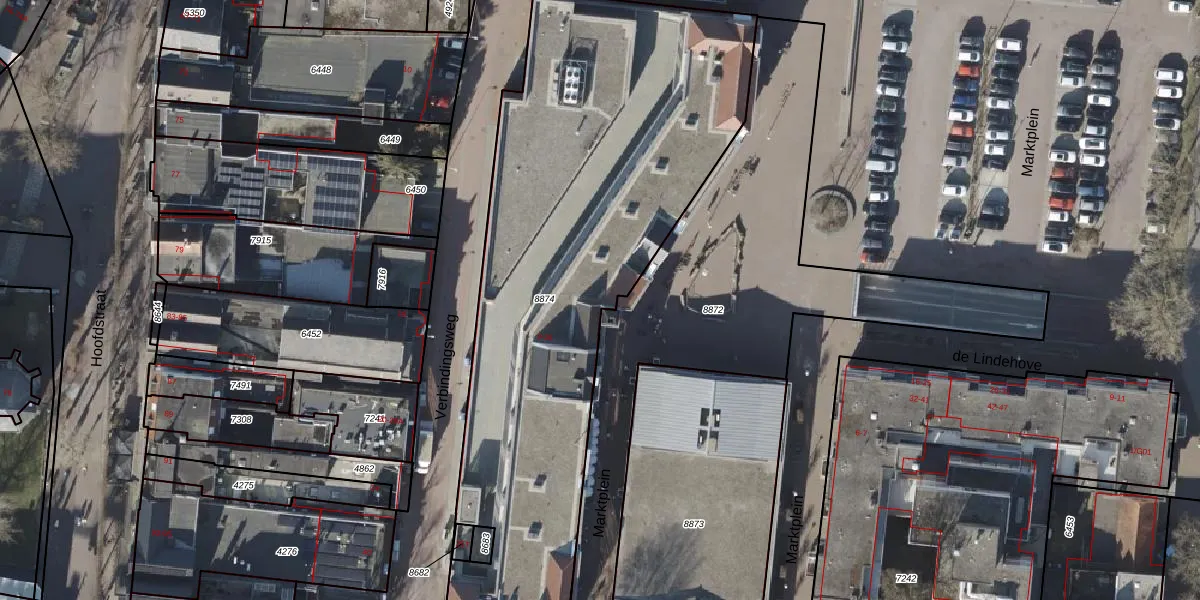 Het perceel waarop Marktplein 6 staat heeft een oppervlakte van 2836 m². Dit is een zeer groot perceel. De perceeloppervlakte wordt geregistreerd door het Kadaster. Gedetailleerde informatie over de maten van dit perceel kunt u vinden in het rapport Kadastrale kaart met maatvoering van Marktplein 6.