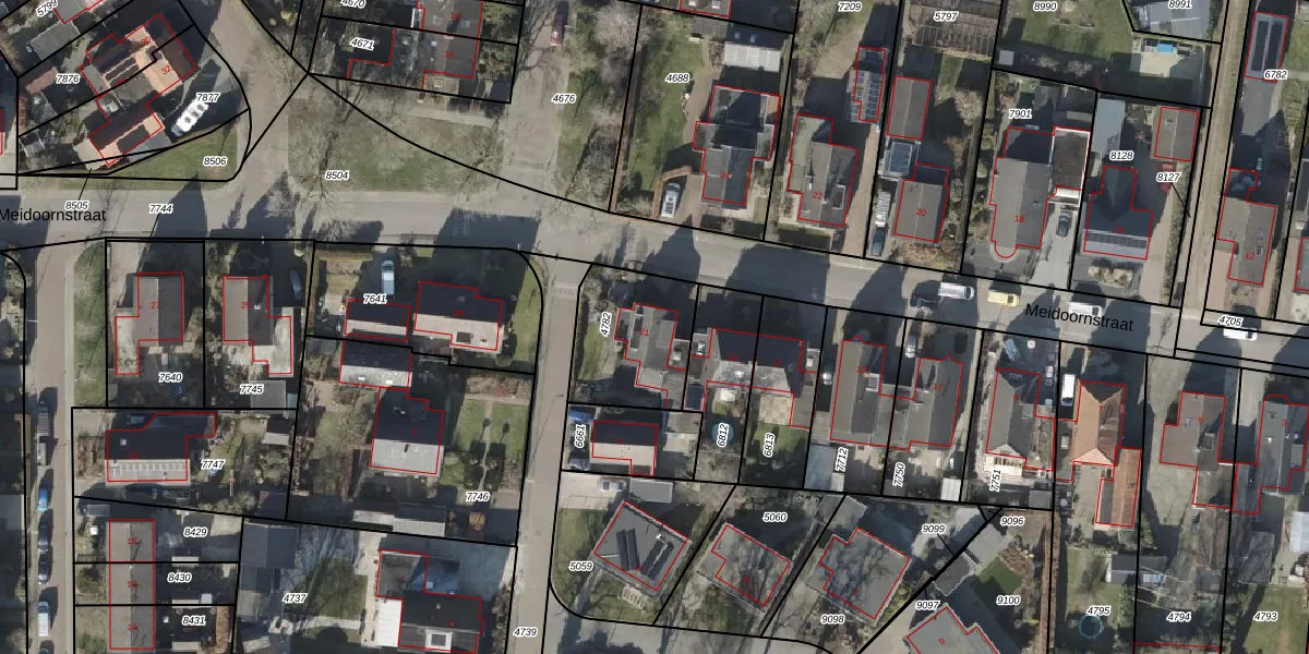 Gebruik de zoekbalk of klik op een perceel voor informatie over de adressen binnen dit perceel.