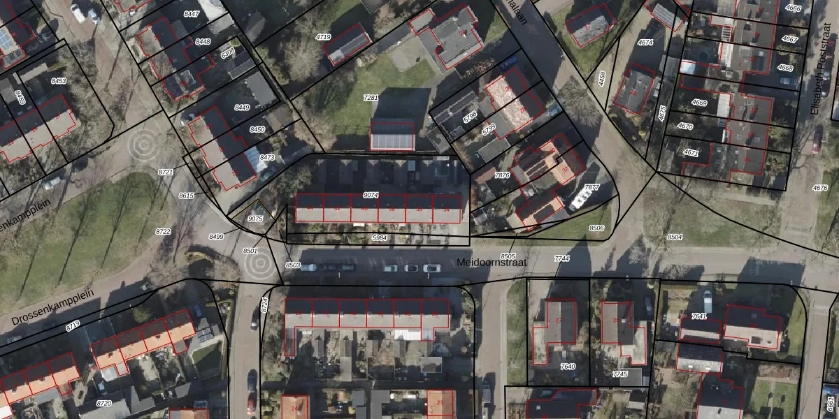 Het perceel waarop Meidoornstraat 36 staat heeft een oppervlakte van 870 m². Dit is een groot perceel. De perceeloppervlakte wordt geregistreerd door het Kadaster. Gedetailleerde informatie over de maten van dit perceel kunt u vinden in het rapport Kadastrale kaart met maatvoering van Meidoornstraat 36.