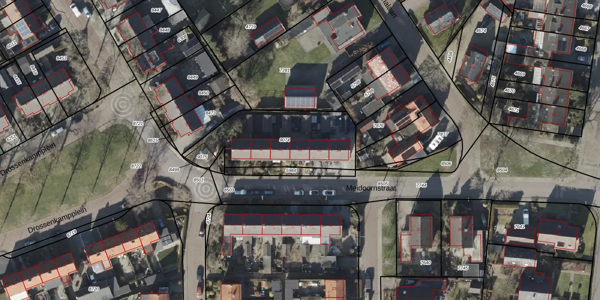 Het perceel waarop Meidoornstraat 38 staat heeft een oppervlakte van 870 m². Dit is een groot perceel. De perceeloppervlakte wordt geregistreerd door het Kadaster. Gedetailleerde informatie over de maten van dit perceel kunt u vinden in het rapport Kadastrale kaart met maatvoering van Meidoornstraat 38.