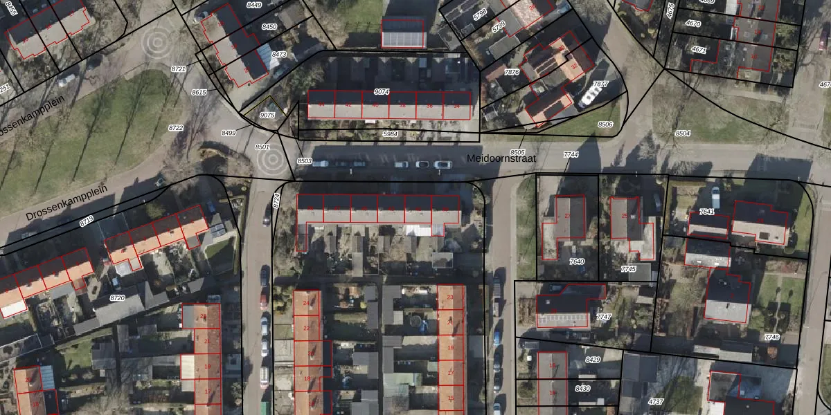Het perceel waarop Meidoornstraat 41 staat heeft een oppervlakte van 6045 m². Dit is een zeer groot perceel. De perceeloppervlakte wordt geregistreerd door het Kadaster. Gedetailleerde informatie over de maten van dit perceel kunt u vinden in het rapport Kadastrale kaart met maatvoering van Meidoornstraat 41.