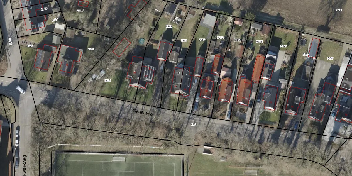 Het perceel waarop Oenerweg 41 staat heeft een oppervlakte van 562 m². Dit is een groot perceel. De perceeloppervlakte wordt geregistreerd door het Kadaster. Gedetailleerde informatie over de maten van dit perceel kunt u vinden in het rapport Kadastrale kaart met maatvoering van Oenerweg 41.