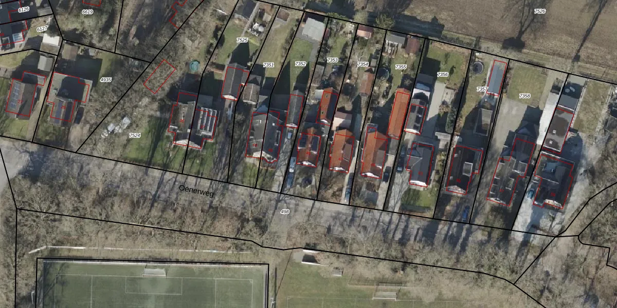Het perceel waarop Oenerweg 45 staat heeft een oppervlakte van 616 m². Dit is een groot perceel. De perceeloppervlakte wordt geregistreerd door het Kadaster. Gedetailleerde informatie over de maten van dit perceel kunt u vinden in het rapport Kadastrale kaart met maatvoering van Oenerweg 45.