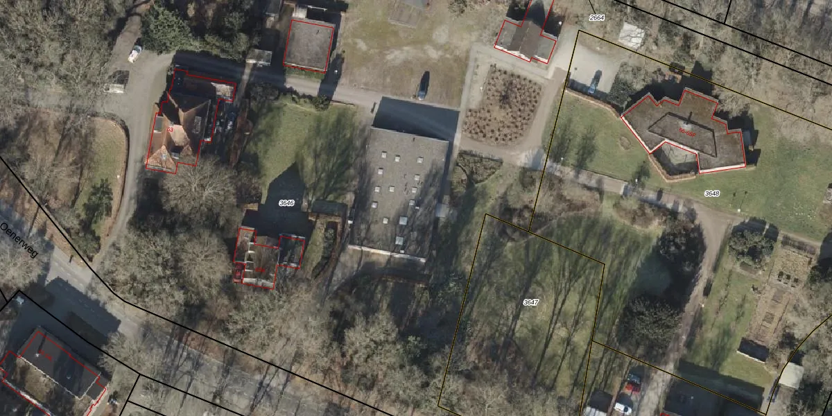 Het perceel waarop Oenerweg 63-B-08 staat heeft een oppervlakte van 1,7 ha. Dit is een zeer groot perceel. De perceeloppervlakte wordt geregistreerd door het Kadaster. Gedetailleerde informatie over de maten van dit perceel kunt u vinden in het rapport Kadastrale kaart met maatvoering van Oenerweg 63-B-08.