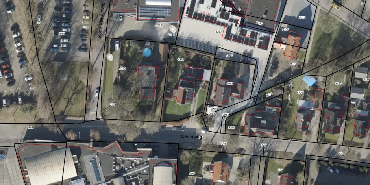 Het perceel waarop Oenerweg 7 staat heeft een oppervlakte van 903 m². Dit is een groot perceel. De perceeloppervlakte wordt geregistreerd door het Kadaster. Gedetailleerde informatie over de maten van dit perceel kunt u vinden in het rapport Kadastrale kaart met maatvoering van Oenerweg 7.