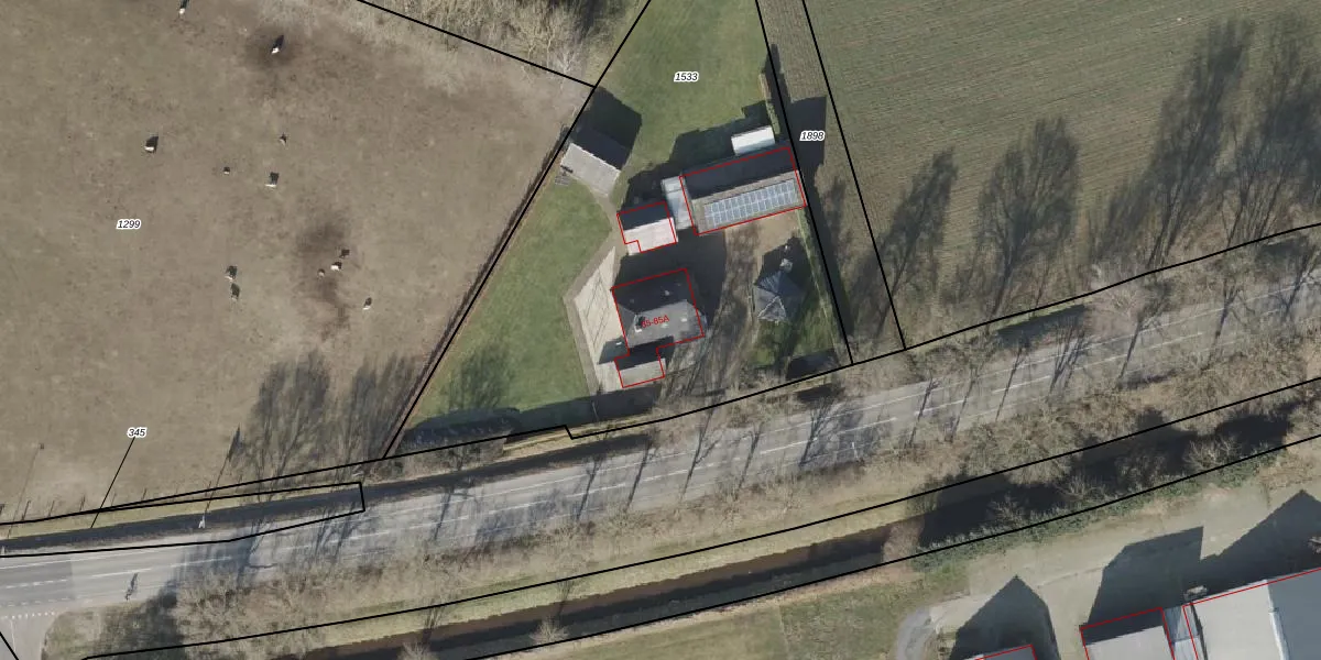 Het perceel waarop Oenerweg 85 staat heeft een oppervlakte van 2950 m². Dit is een zeer groot perceel. De perceeloppervlakte wordt geregistreerd door het Kadaster. Gedetailleerde informatie over de maten van dit perceel kunt u vinden in het rapport Kadastrale kaart met maatvoering van Oenerweg 85.