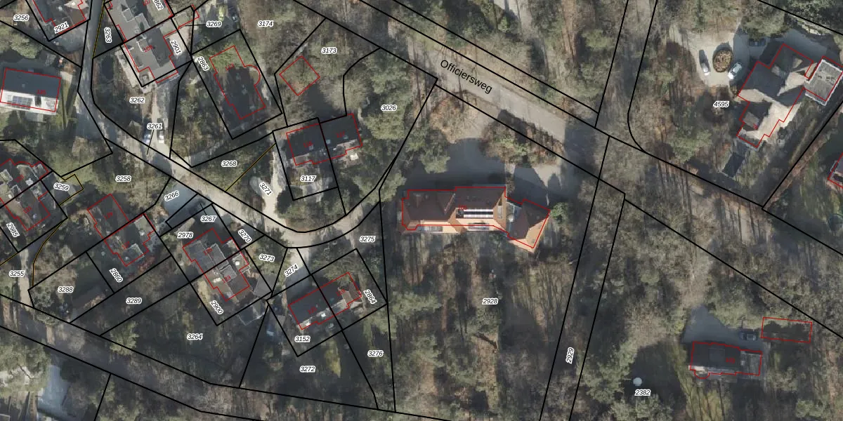 Het perceel waarop Officiersweg 105 staat heeft een oppervlakte van 3095 m². Dit is een zeer groot perceel. De perceeloppervlakte wordt geregistreerd door het Kadaster. Gedetailleerde informatie over de maten van dit perceel kunt u vinden in het rapport Kadastrale kaart met maatvoering van Officiersweg 105.