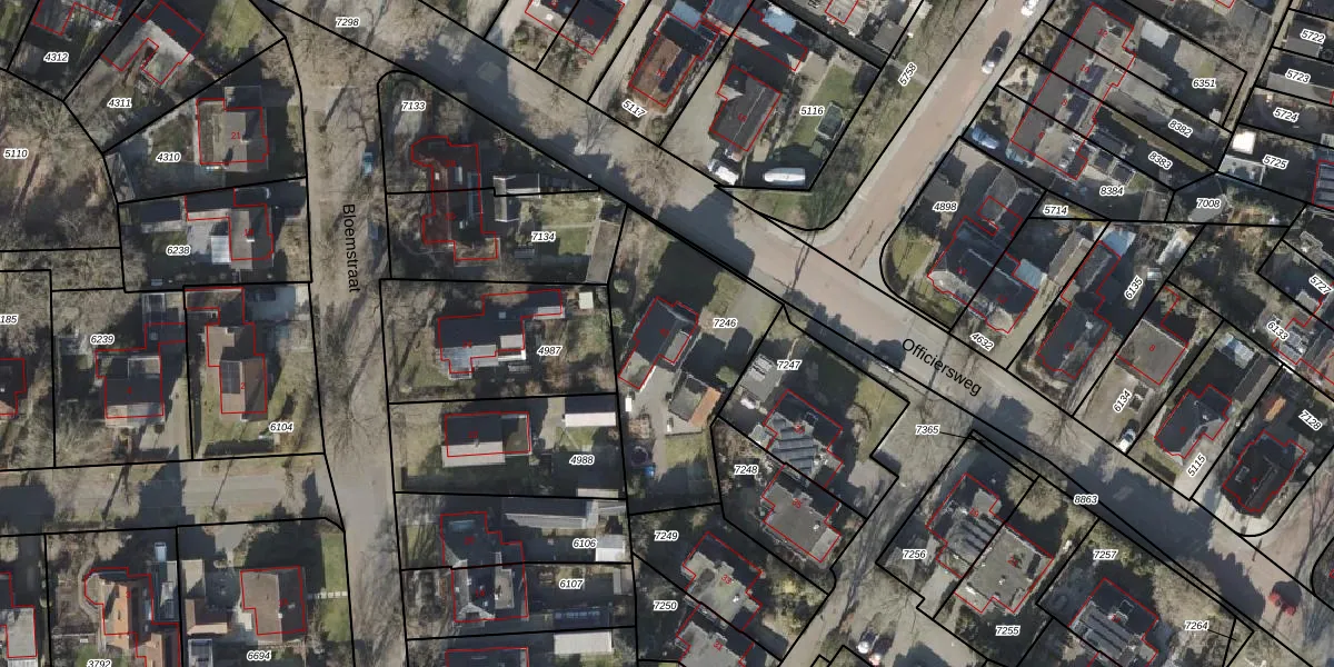 Het perceel waarop Officiersweg 43 staat heeft een oppervlakte van 739 m². Dit is een groot perceel. De perceeloppervlakte wordt geregistreerd door het Kadaster. Gedetailleerde informatie over de maten van dit perceel kunt u vinden in het rapport Kadastrale kaart met maatvoering van Officiersweg 43.