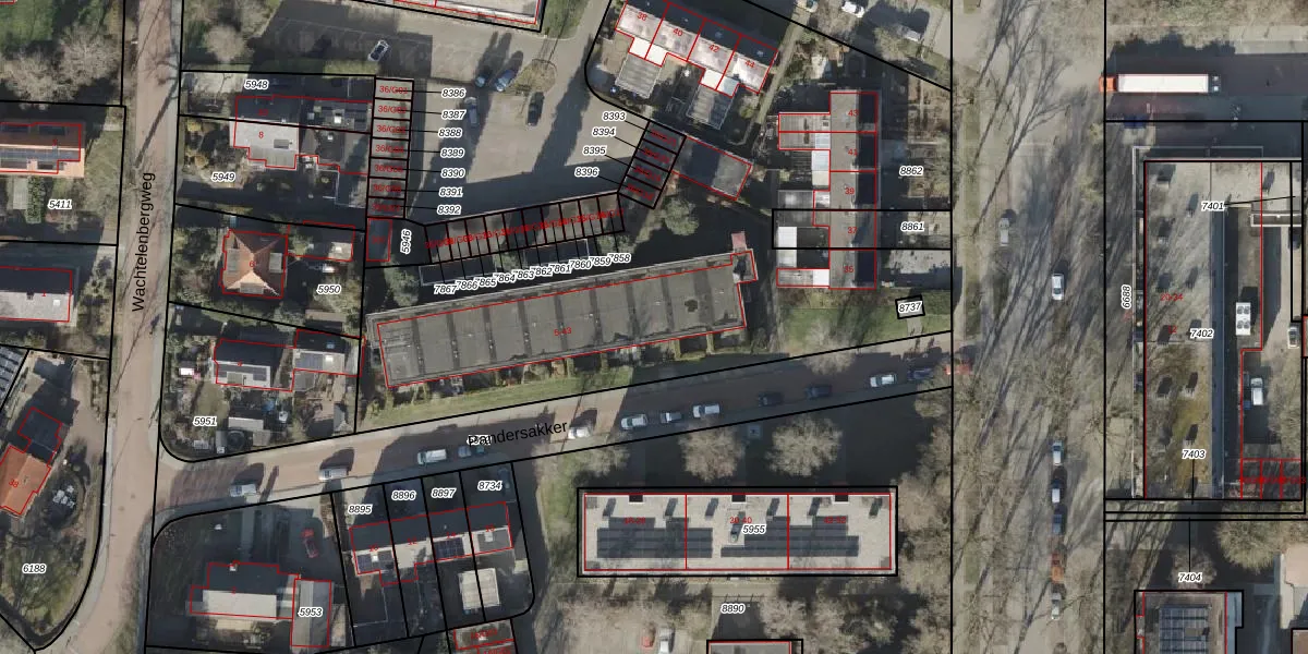 Het perceel waarop Pandersakker 19 staat heeft een oppervlakte van 3389 m². Dit is een zeer groot perceel. De perceeloppervlakte wordt geregistreerd door het Kadaster. Gedetailleerde informatie over de maten van dit perceel kunt u vinden in het rapport Kadastrale kaart met maatvoering van Pandersakker 19.