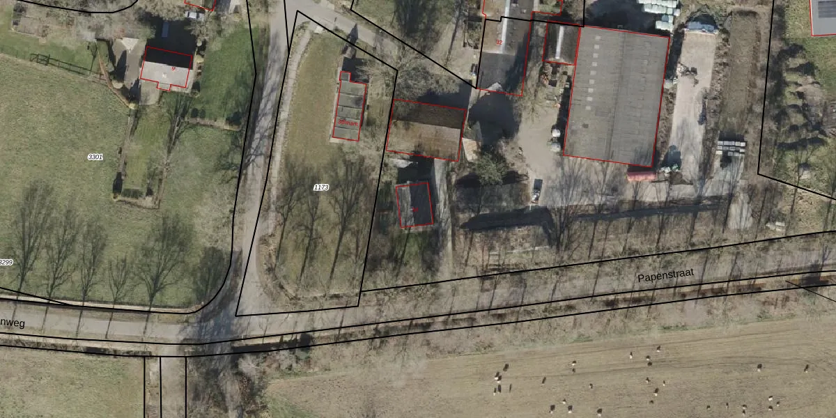 Het perceel waarop Papenstraat 34 staat heeft een oppervlakte van 1,5 ha. Dit is een zeer groot perceel. De perceeloppervlakte wordt geregistreerd door het Kadaster. Gedetailleerde informatie over de maten van dit perceel kunt u vinden in het rapport Kadastrale kaart met maatvoering van Papenstraat 34.