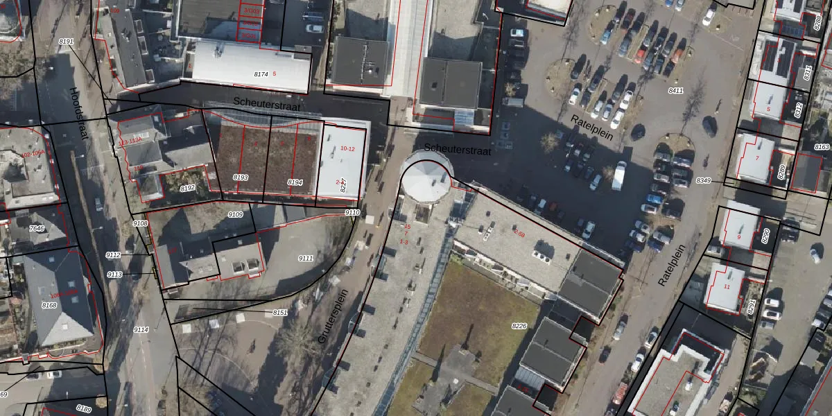 Het perceel waarop Ratelplein 14 staat heeft een oppervlakte van 3757 m². Dit is een zeer groot perceel. De perceeloppervlakte wordt geregistreerd door het Kadaster. Gedetailleerde informatie over de maten van dit perceel kunt u vinden in het rapport Kadastrale kaart met maatvoering van Ratelplein 14.