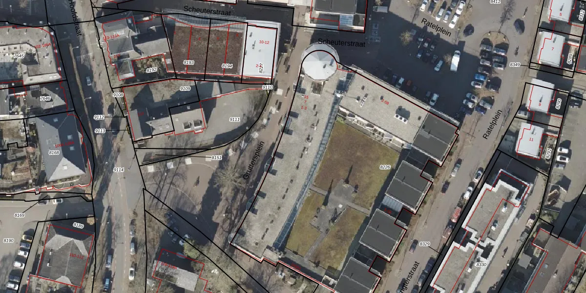 Het perceel waarop Ratelplein 20 staat heeft een oppervlakte van 3757 m². Dit is een zeer groot perceel. De perceeloppervlakte wordt geregistreerd door het Kadaster. Gedetailleerde informatie over de maten van dit perceel kunt u vinden in het rapport Kadastrale kaart met maatvoering van Ratelplein 20.
