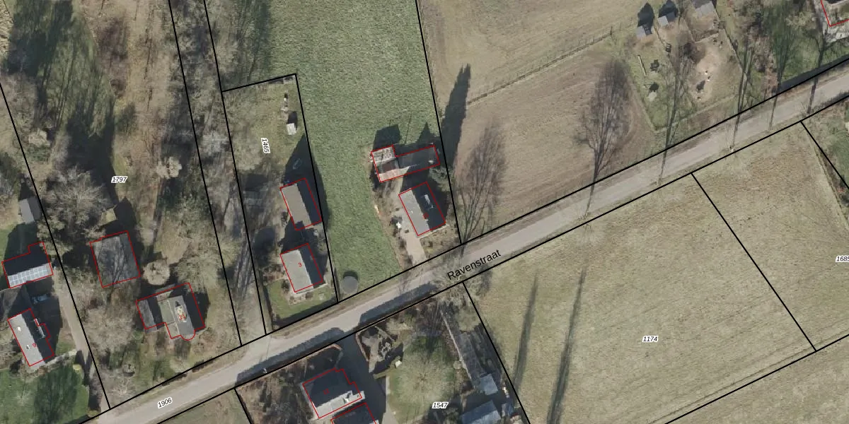 Het perceel waarop Ravenstraat 15 staat heeft een oppervlakte van 3595 m². Dit is een zeer groot perceel. De perceeloppervlakte wordt geregistreerd door het Kadaster. Gedetailleerde informatie over de maten van dit perceel kunt u vinden in het rapport Kadastrale kaart met maatvoering van Ravenstraat 15.