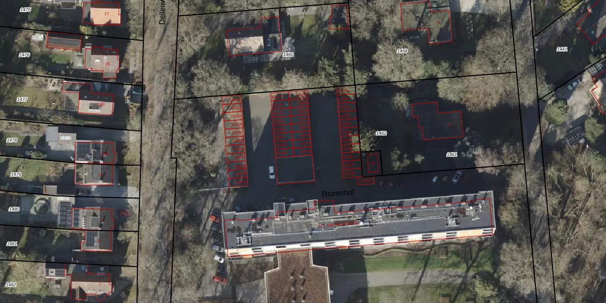 Het perceel waarop Rozenhof 1-G20 staat heeft een oppervlakte van 1,3 ha. Dit is een zeer groot perceel. De perceeloppervlakte wordt geregistreerd door het Kadaster. Gedetailleerde informatie over de maten van dit perceel kunt u vinden in het rapport Kadastrale kaart met maatvoering van Rozenhof 1-G20.