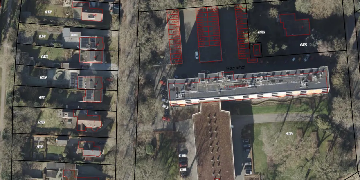 Het perceel waarop Rozenhof 25 staat heeft een oppervlakte van 1,3 ha. Dit is een zeer groot perceel. De perceeloppervlakte wordt geregistreerd door het Kadaster. Gedetailleerde informatie over de maten van dit perceel kunt u vinden in het rapport Kadastrale kaart met maatvoering van Rozenhof 25.