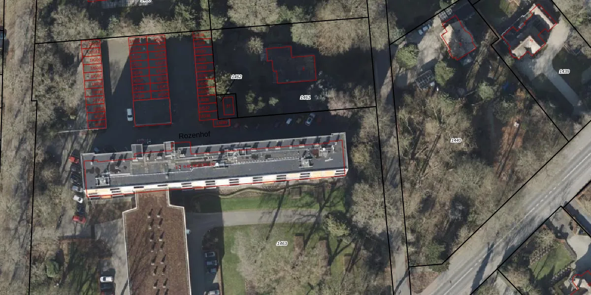 Het perceel waarop Rozenhof 5 staat heeft een oppervlakte van 1,3 ha. Dit is een zeer groot perceel. De perceeloppervlakte wordt geregistreerd door het Kadaster. Gedetailleerde informatie over de maten van dit perceel kunt u vinden in het rapport Kadastrale kaart met maatvoering van Rozenhof 5.