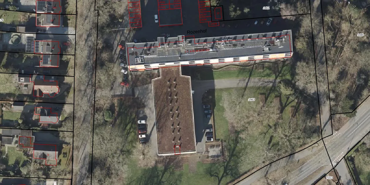 Het perceel waarop Rozenhof 52 staat heeft een oppervlakte van 1,3 ha. Dit is een zeer groot perceel. De perceeloppervlakte wordt geregistreerd door het Kadaster. Gedetailleerde informatie over de maten van dit perceel kunt u vinden in het rapport Kadastrale kaart met maatvoering van Rozenhof 52.