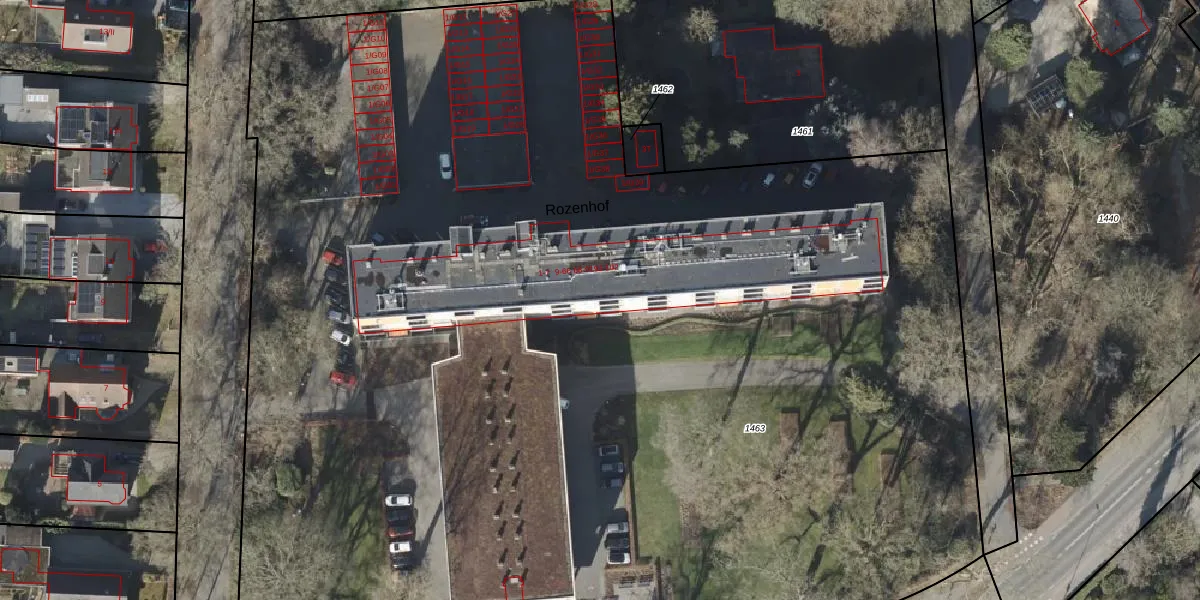 Het perceel waarop Rozenhof 85 staat heeft een oppervlakte van 1,3 ha. Dit is een zeer groot perceel. De perceeloppervlakte wordt geregistreerd door het Kadaster. Gedetailleerde informatie over de maten van dit perceel kunt u vinden in het rapport Kadastrale kaart met maatvoering van Rozenhof 85.