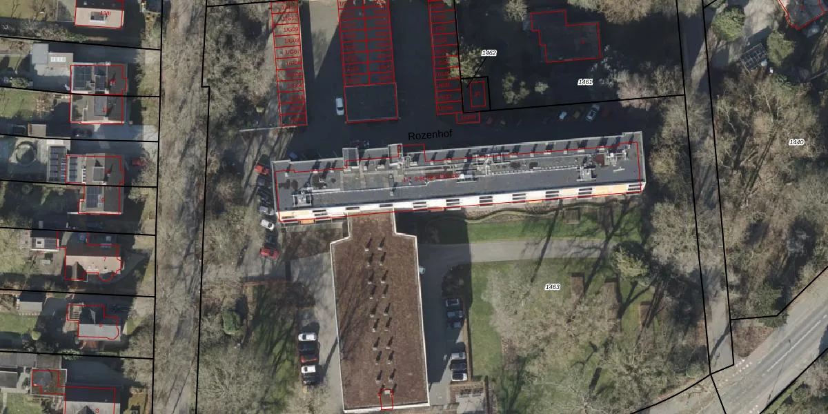 Het perceel waarop Rozenhof 94 staat heeft een oppervlakte van 1,3 ha. Dit is een zeer groot perceel. De perceeloppervlakte wordt geregistreerd door het Kadaster. Gedetailleerde informatie over de maten van dit perceel kunt u vinden in het rapport Kadastrale kaart met maatvoering van Rozenhof 94.