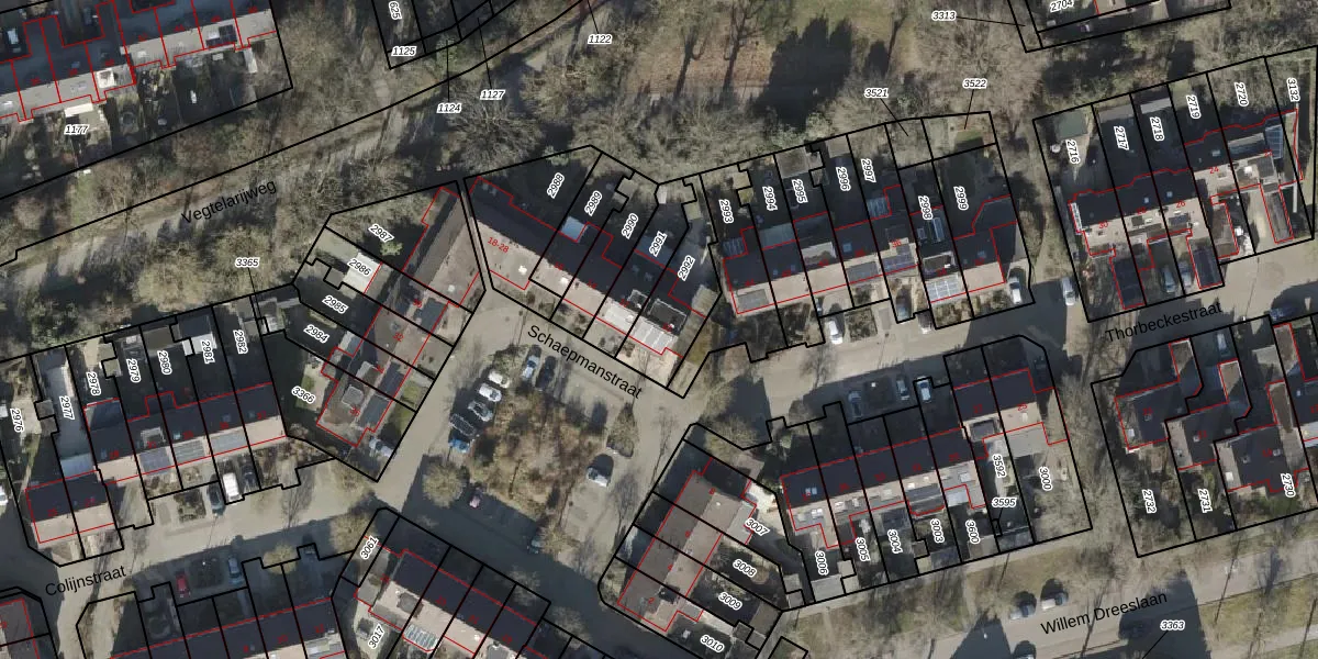Gebruik de zoekbalk of klik op een perceel voor informatie over de adressen binnen dit perceel.