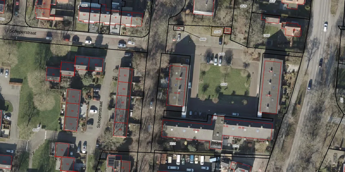 Het perceel waarop Scheperstraat 57 staat heeft een oppervlakte van 2755 m². Dit is een zeer groot perceel. De perceeloppervlakte wordt geregistreerd door het Kadaster. Gedetailleerde informatie over de maten van dit perceel kunt u vinden in het rapport Kadastrale kaart met maatvoering van Scheperstraat 57.