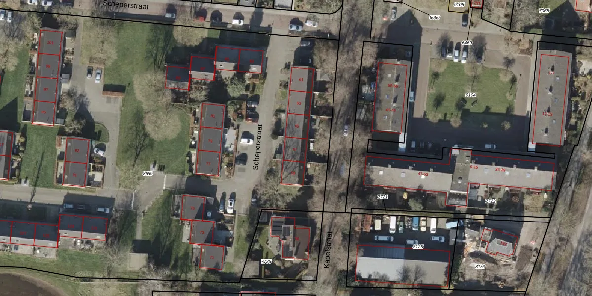 Het perceel waarop Scheperstraat 67 staat heeft een oppervlakte van 1,4 ha. Dit is een zeer groot perceel. De perceeloppervlakte wordt geregistreerd door het Kadaster. Gedetailleerde informatie over de maten van dit perceel kunt u vinden in het rapport Kadastrale kaart met maatvoering van Scheperstraat 67.