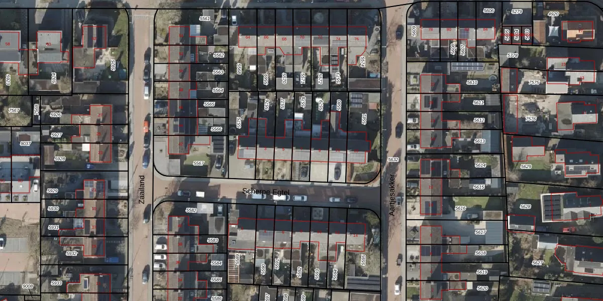 Gebruik de zoekbalk of klik op een perceel voor informatie over de adressen binnen dit perceel.