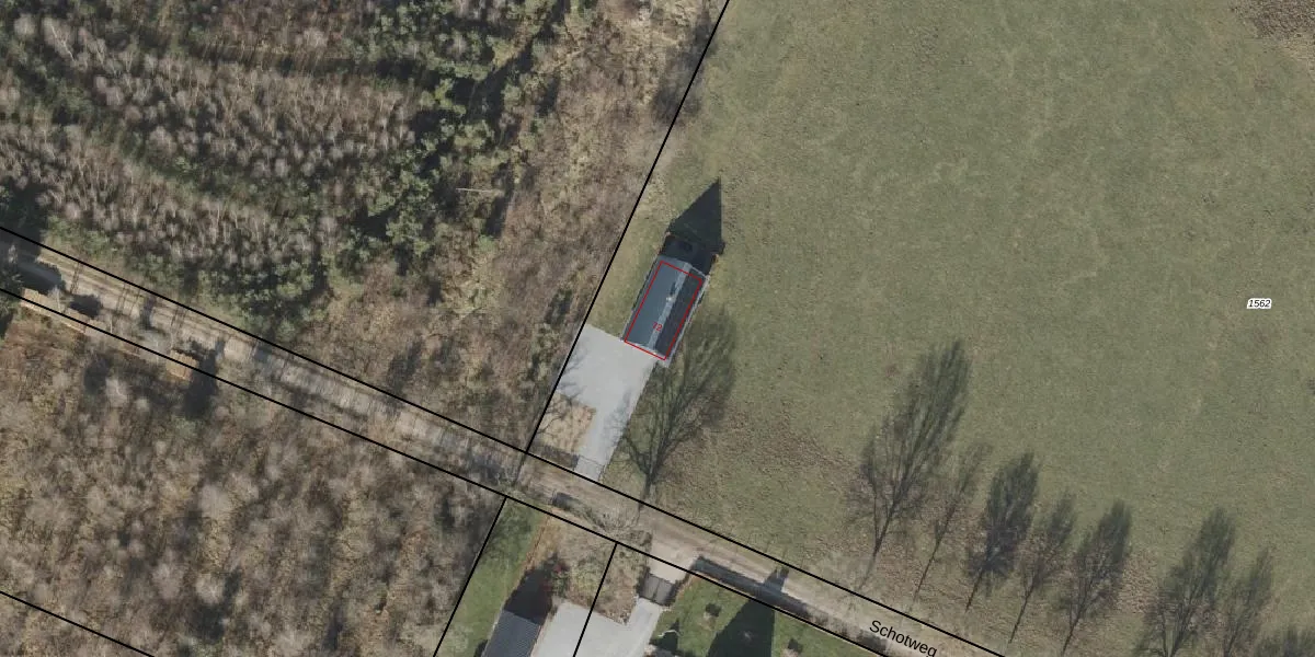 Het perceel waarop Schotweg 72 staat heeft een oppervlakte van 2,0 ha. Dit is een zeer groot perceel. De perceeloppervlakte wordt geregistreerd door het Kadaster. Gedetailleerde informatie over de maten van dit perceel kunt u vinden in het rapport Kadastrale kaart met maatvoering van Schotweg 72.