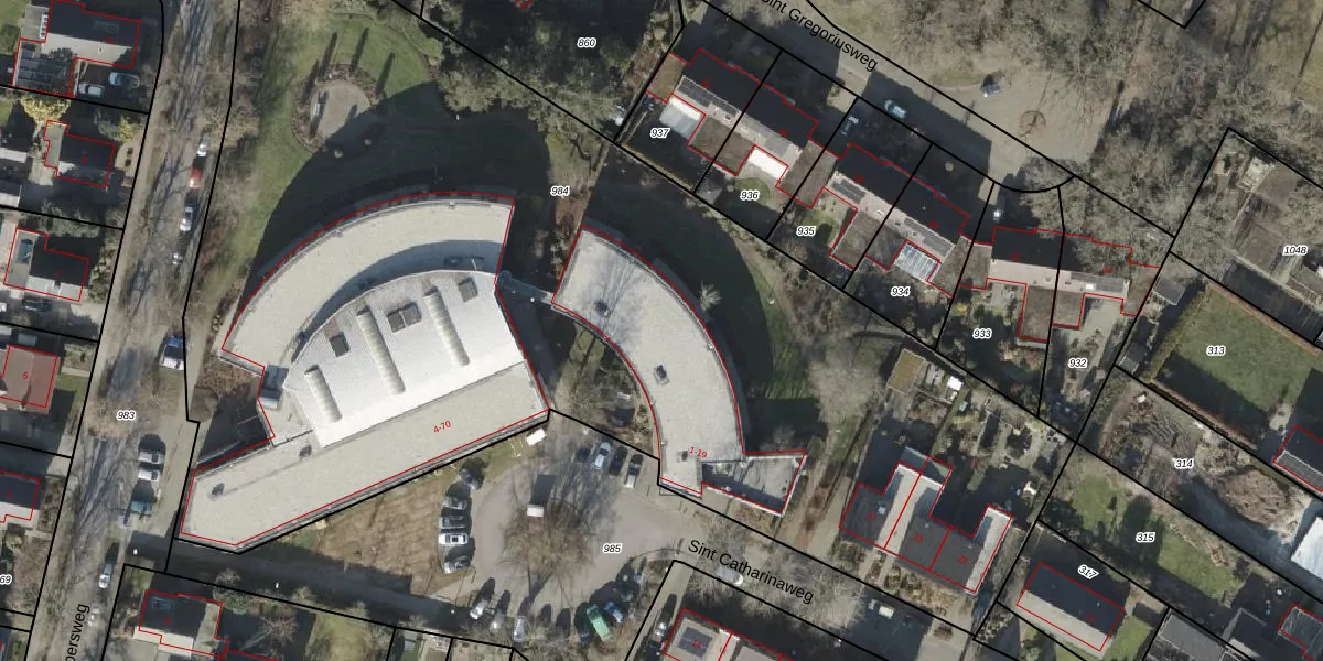 Het perceel waarop Sint Catharinaweg 15 staat heeft een oppervlakte van 7000 m². Dit is een zeer groot perceel. De perceeloppervlakte wordt geregistreerd door het Kadaster. Gedetailleerde informatie over de maten van dit perceel kunt u vinden in het rapport Kadastrale kaart met maatvoering van Sint Catharinaweg 15.