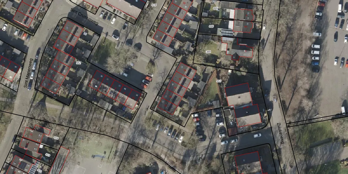 Het perceel waarop Sint Crusiusweg 47 staat heeft een oppervlakte van 2825 m². Dit is een zeer groot perceel. De perceeloppervlakte wordt geregistreerd door het Kadaster. Gedetailleerde informatie over de maten van dit perceel kunt u vinden in het rapport Kadastrale kaart met maatvoering van Sint Crusiusweg 47.