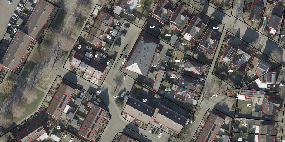 Het perceel waarop Sint Maartensweg 8 staat heeft een oppervlakte van 900 m². Dit is een groot perceel. De perceeloppervlakte wordt geregistreerd door het Kadaster. Gedetailleerde informatie over de maten van dit perceel kunt u vinden in het rapport Kadastrale kaart met maatvoering van Sint Maartensweg 8.