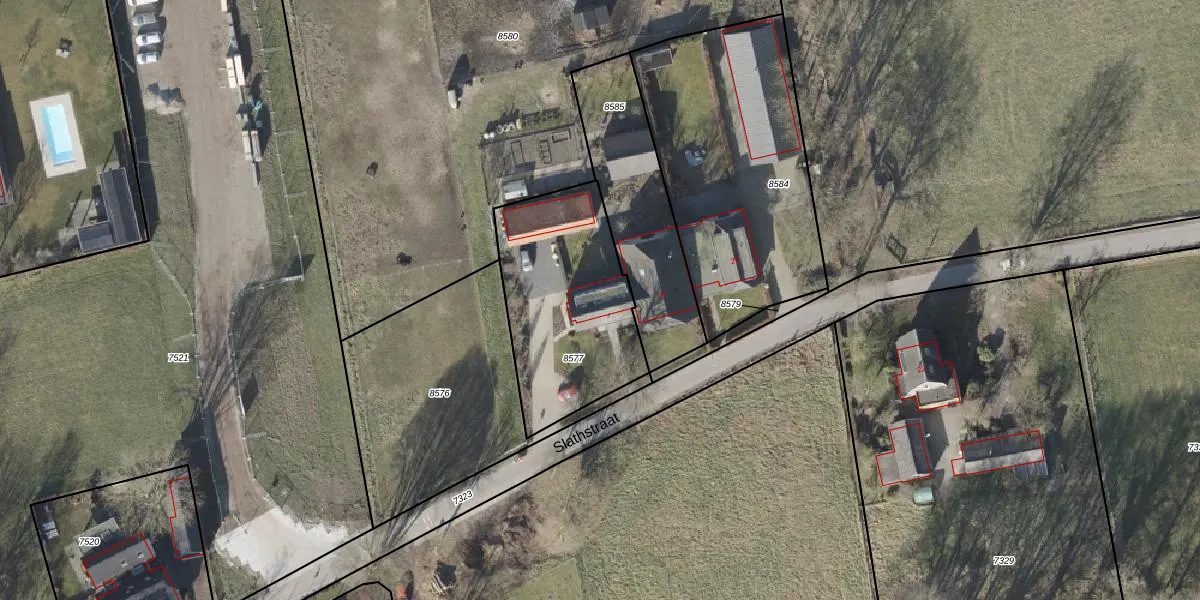 Het perceel waarop Slathstraat 27 staat heeft een oppervlakte van 725 m². Dit is een groot perceel. De perceeloppervlakte wordt geregistreerd door het Kadaster. Gedetailleerde informatie over de maten van dit perceel kunt u vinden in het rapport Kadastrale kaart met maatvoering van Slathstraat 27.