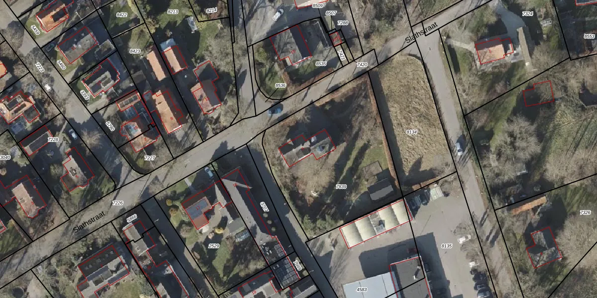Het perceel waarop Slathstraat 6 staat heeft een oppervlakte van 1606 m². Dit is een zeer groot perceel. De perceeloppervlakte wordt geregistreerd door het Kadaster. Gedetailleerde informatie over de maten van dit perceel kunt u vinden in het rapport Kadastrale kaart met maatvoering van Slathstraat 6.