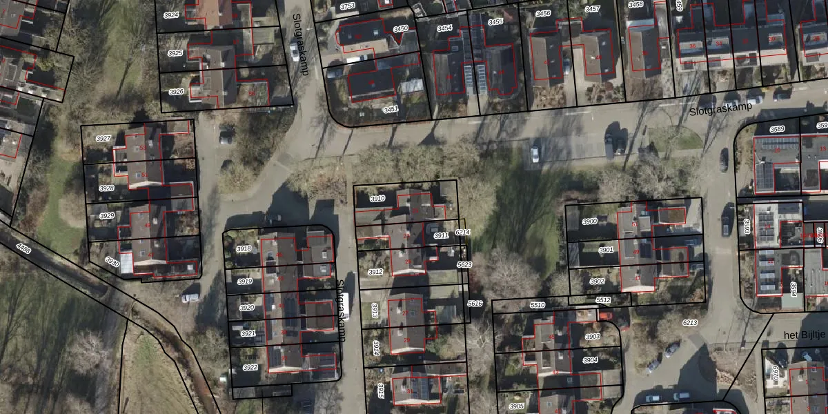 Gebruik de zoekbalk of klik op een perceel voor informatie over de adressen binnen dit perceel.