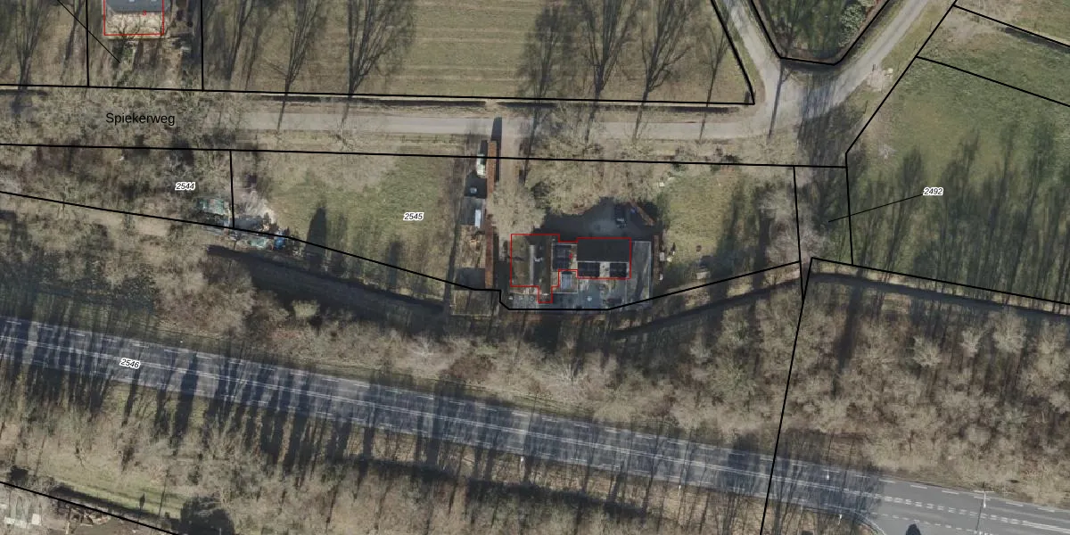 Het perceel waarop Spiekerweg 4 staat heeft een oppervlakte van 2518 m². Dit is een zeer groot perceel. De perceeloppervlakte wordt geregistreerd door het Kadaster. Gedetailleerde informatie over de maten van dit perceel kunt u vinden in het rapport Kadastrale kaart met maatvoering van Spiekerweg 4.