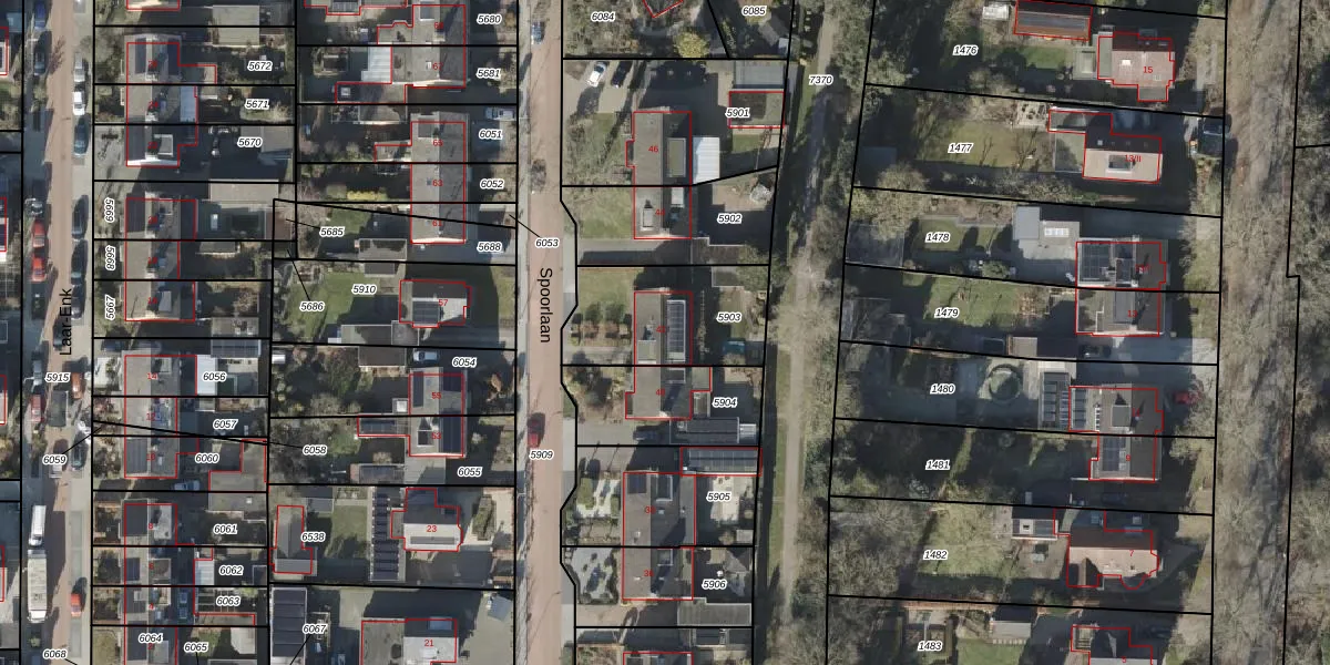 Het perceel waarop Spoorlaan 42 staat heeft een oppervlakte van 447 m². Dit is een groot perceel. De perceeloppervlakte wordt geregistreerd door het Kadaster. Gedetailleerde informatie over de maten van dit perceel kunt u vinden in het rapport Kadastrale kaart met maatvoering van Spoorlaan 42.