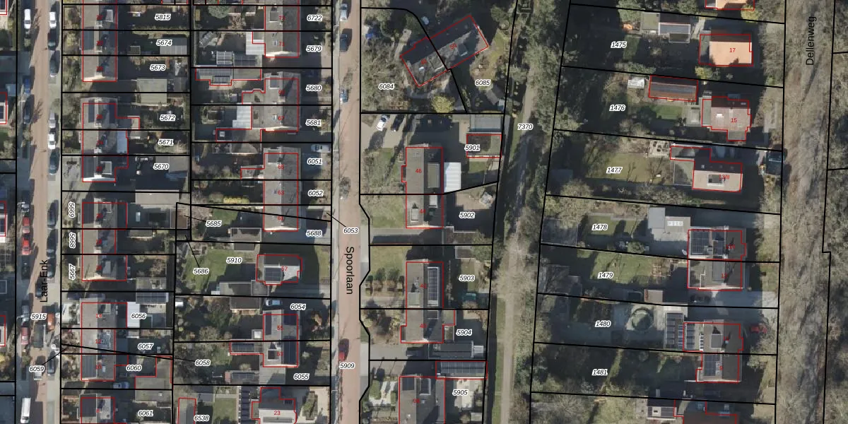 Het perceel waarop Spoorlaan 44 staat heeft een oppervlakte van 382 m². Dit is een groot perceel. De perceeloppervlakte wordt geregistreerd door het Kadaster. Gedetailleerde informatie over de maten van dit perceel kunt u vinden in het rapport Kadastrale kaart met maatvoering van Spoorlaan 44.