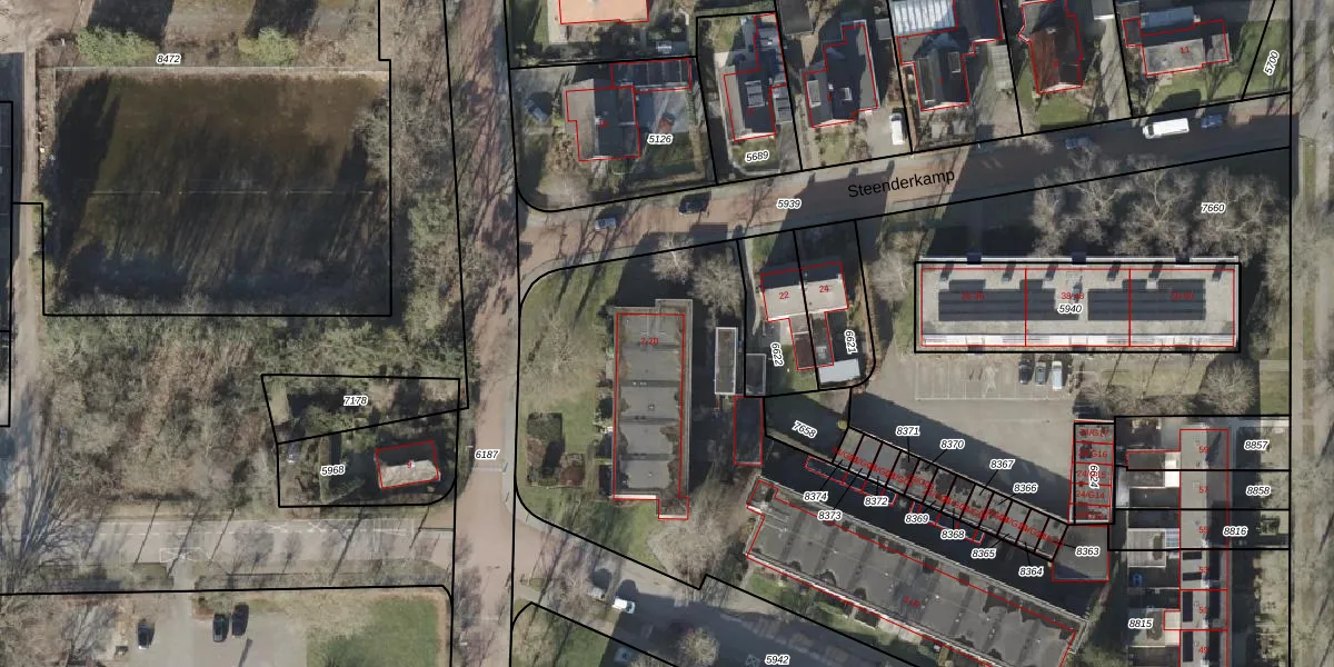 Het perceel waarop Steenderkamp 2 staat heeft een oppervlakte van 3605 m². Dit is een zeer groot perceel. De perceeloppervlakte wordt geregistreerd door het Kadaster. Gedetailleerde informatie over de maten van dit perceel kunt u vinden in het rapport Kadastrale kaart met maatvoering van Steenderkamp 2.