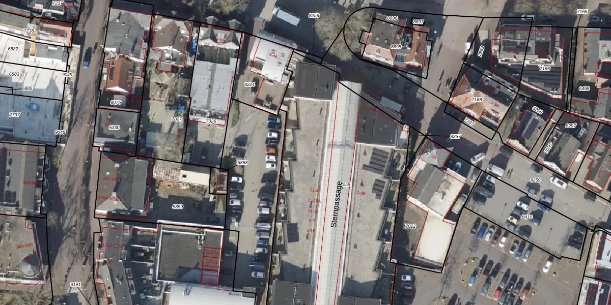 Het perceel waarop Sternpassage 33 staat heeft een oppervlakte van 3314 m². Dit is een zeer groot perceel. De perceeloppervlakte wordt geregistreerd door het Kadaster. Gedetailleerde informatie over de maten van dit perceel kunt u vinden in het rapport Kadastrale kaart met maatvoering van Sternpassage 33.