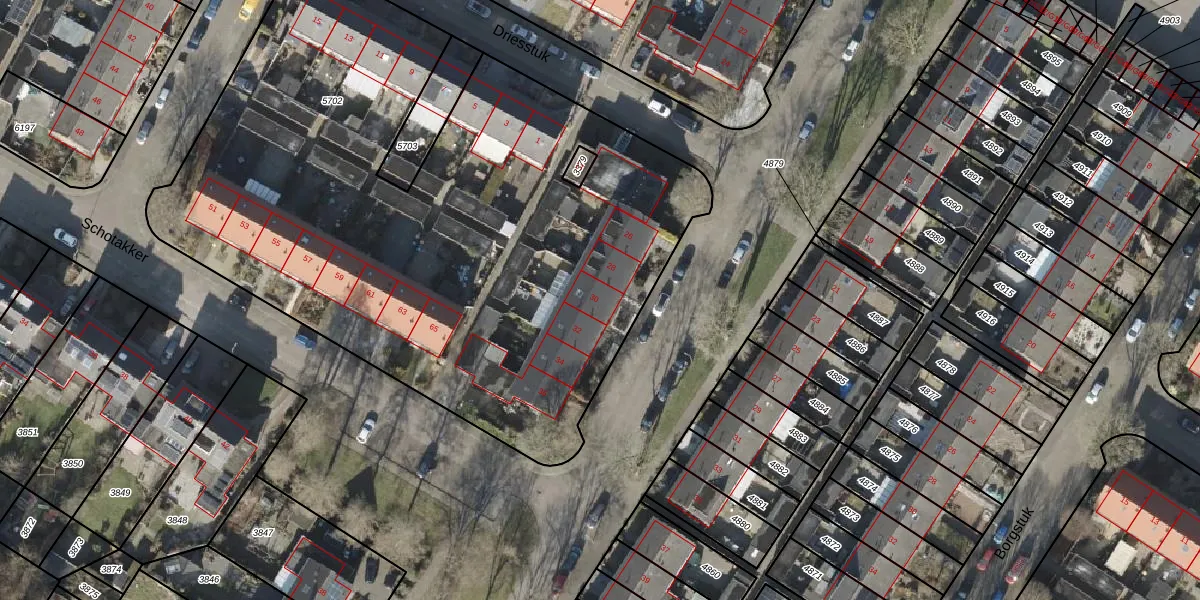 Het perceel waarop Struikstuk 30 staat heeft een oppervlakte van 4143 m². Dit is een zeer groot perceel. De perceeloppervlakte wordt geregistreerd door het Kadaster. Gedetailleerde informatie over de maten van dit perceel kunt u vinden in het rapport Kadastrale kaart met maatvoering van Struikstuk 30.