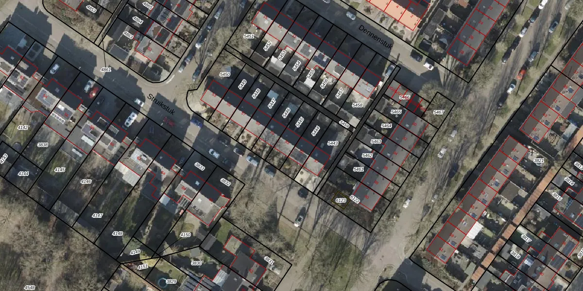 Het perceel waarop Struikstuk 63 staat heeft een oppervlakte van 145 m². Dit is een middelgroot perceel. De perceeloppervlakte wordt geregistreerd door het Kadaster. Gedetailleerde informatie over de maten van dit perceel kunt u vinden in het rapport Kadastrale kaart met maatvoering van Struikstuk 63.