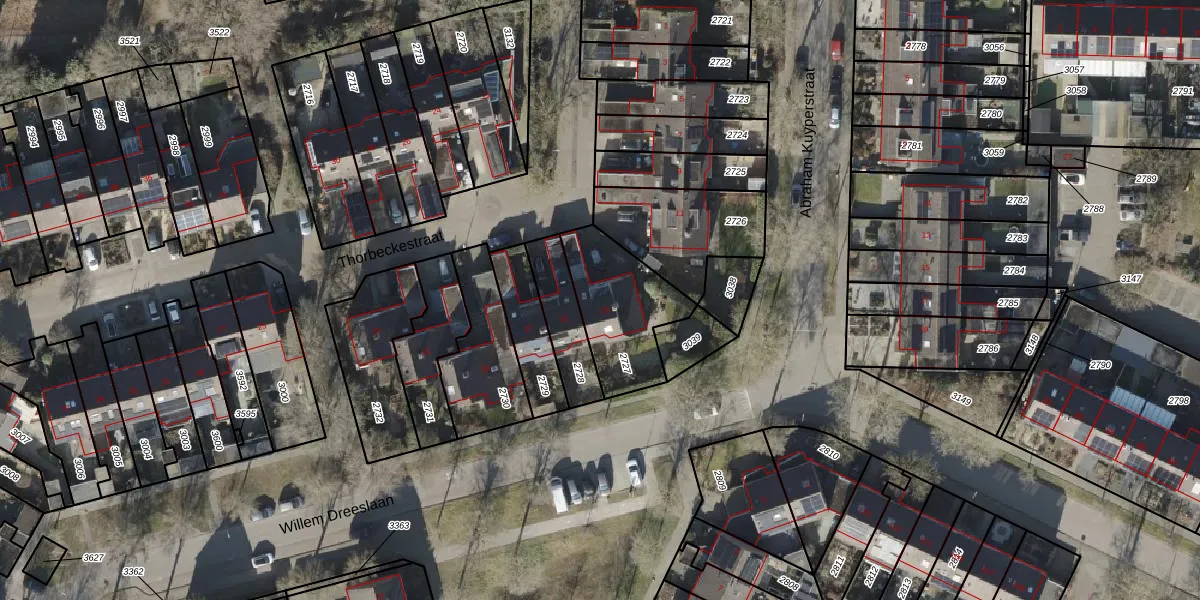 Het perceel waarop Thorbeckestraat 13 staat heeft een oppervlakte van 341 m². Dit is een groot perceel. De perceeloppervlakte wordt geregistreerd door het Kadaster. Gedetailleerde informatie over de maten van dit perceel kunt u vinden in het rapport Kadastrale kaart met maatvoering van Thorbeckestraat 13.