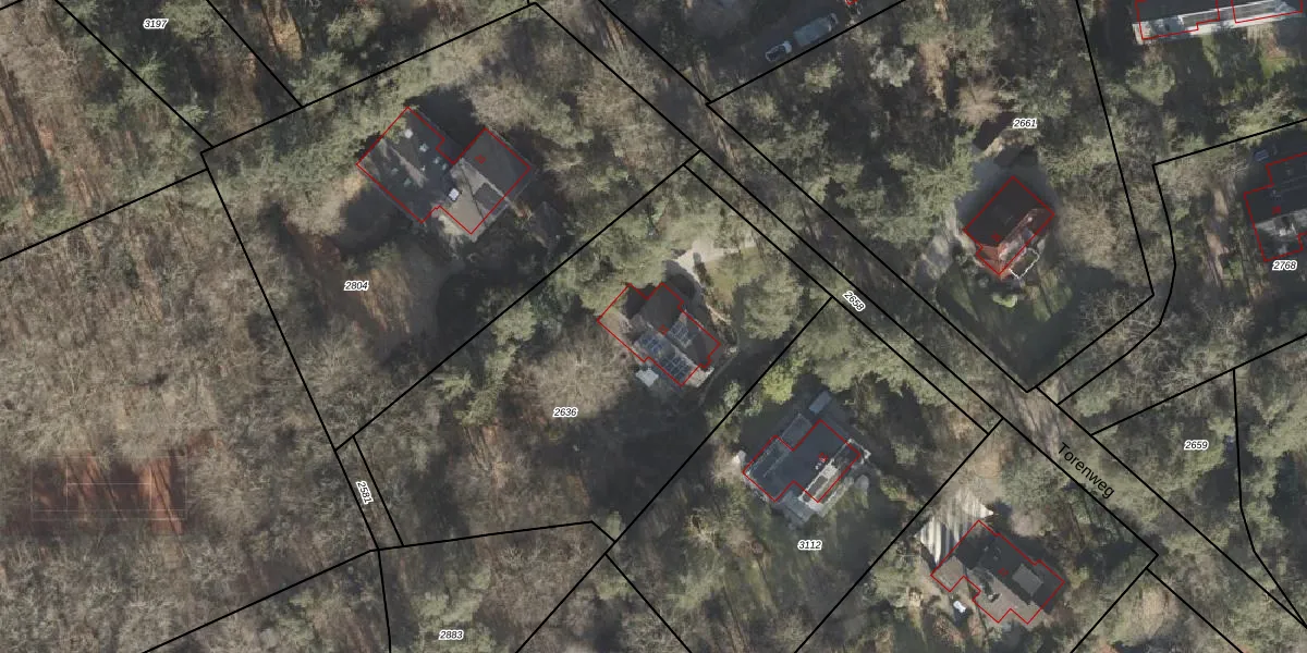Het perceel waarop Torenweg 21 staat heeft een oppervlakte van 2214 m². Dit is een zeer groot perceel. De perceeloppervlakte wordt geregistreerd door het Kadaster. Gedetailleerde informatie over de maten van dit perceel kunt u vinden in het rapport Kadastrale kaart met maatvoering van Torenweg 21.
