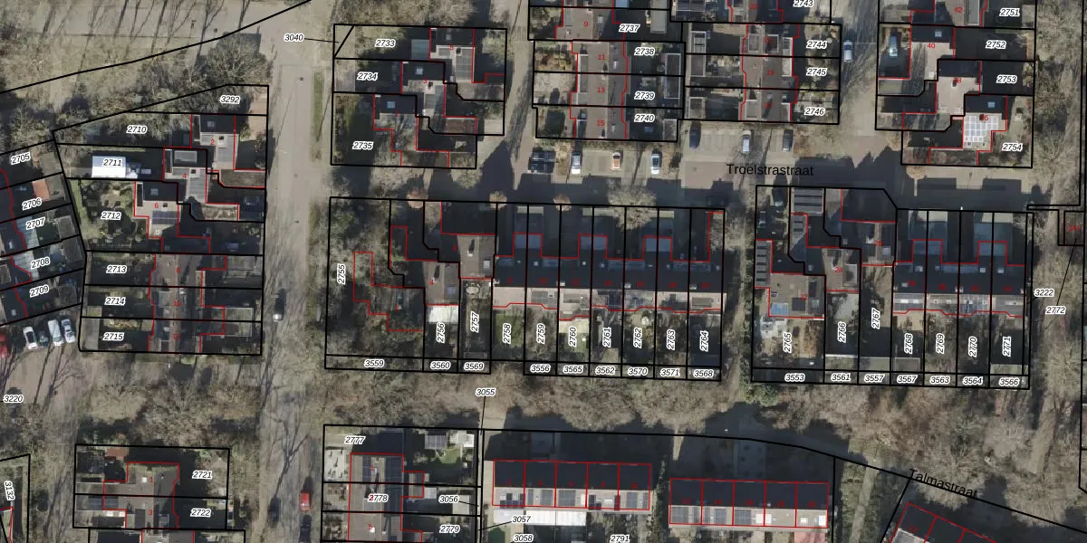 Gebruik de zoekbalk of klik op een perceel voor informatie over de adressen binnen dit perceel.