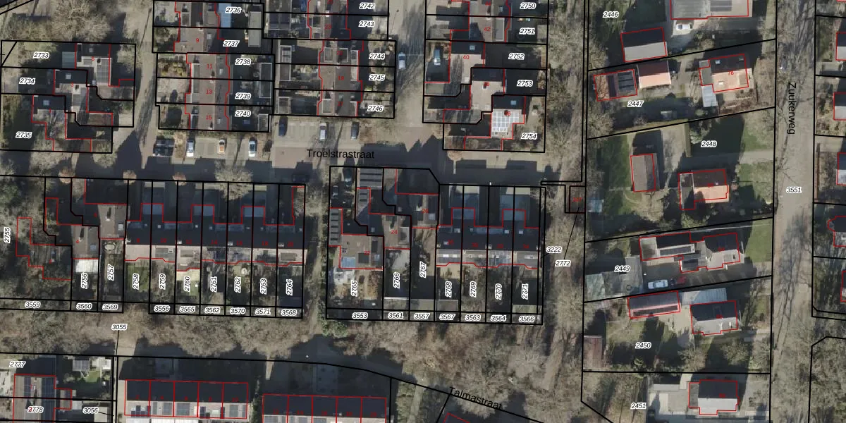 Gebruik de zoekbalk of klik op een perceel voor informatie over de adressen binnen dit perceel.