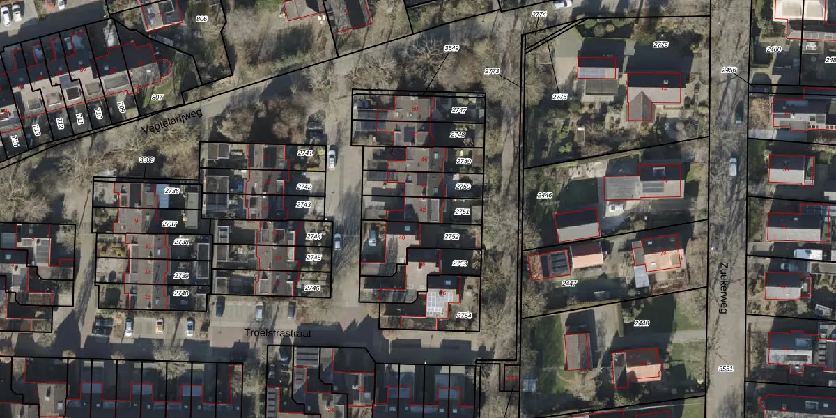 Het perceel waarop Troelstrastraat 42 staat heeft een oppervlakte van 175 m². Dit is een middelgroot perceel. De perceeloppervlakte wordt geregistreerd door het Kadaster. Gedetailleerde informatie over de maten van dit perceel kunt u vinden in het rapport Kadastrale kaart met maatvoering van Troelstrastraat 42.