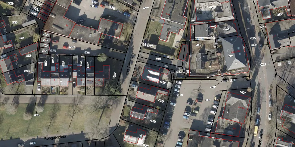 Gebruik de zoekbalk of klik op een perceel voor informatie over de adressen binnen dit perceel.